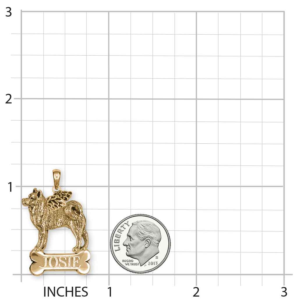 Our Akita Personalized Pendant weighs approximately 10.2 grams. This design measures approximately 1 inch high (25.4 mm) .