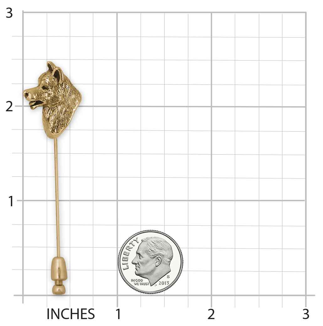 Our Akita Brooch Pin weighs approximately 11.5 grams. This design measures approximately 1 1/2 inch high (38.1 mm) .