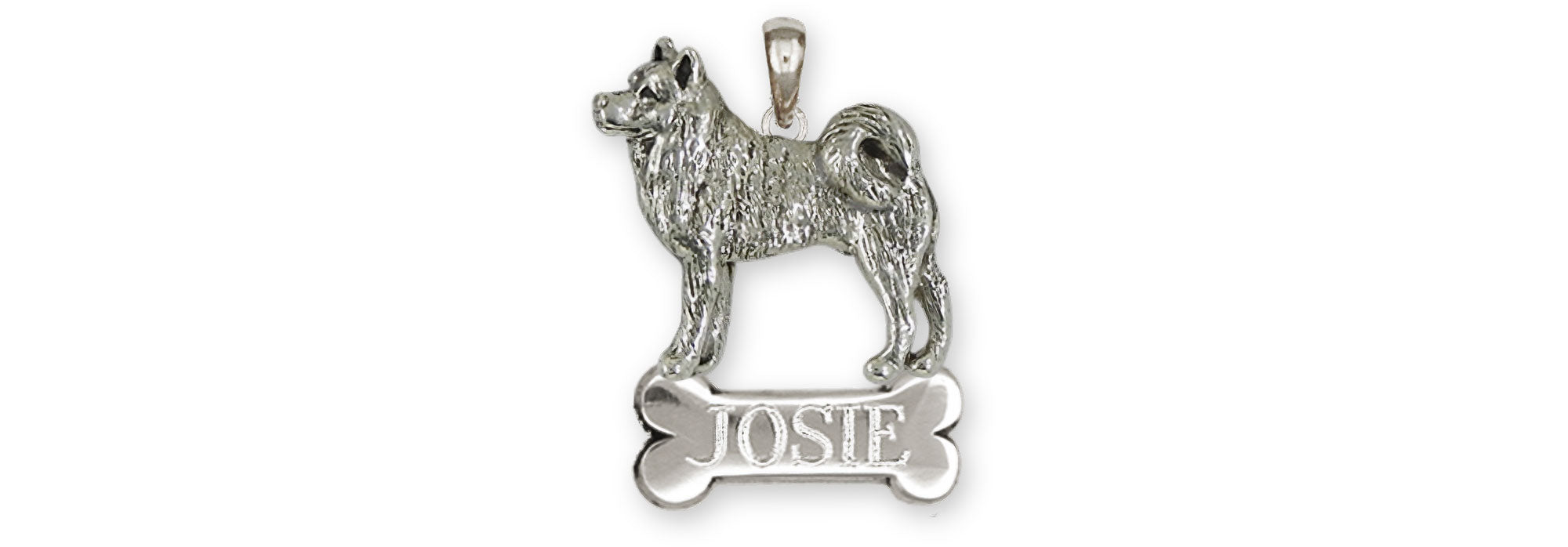 Our handmade Akita Personalized Pendant jewelry is a perfect addition to any necklace chain. You may also order your own personalized engraving on this Akita Personalized Pendant for a very special personal touch. This Akita Personalized Pendant is Sterling Silver The Akita is Sterling Silver.