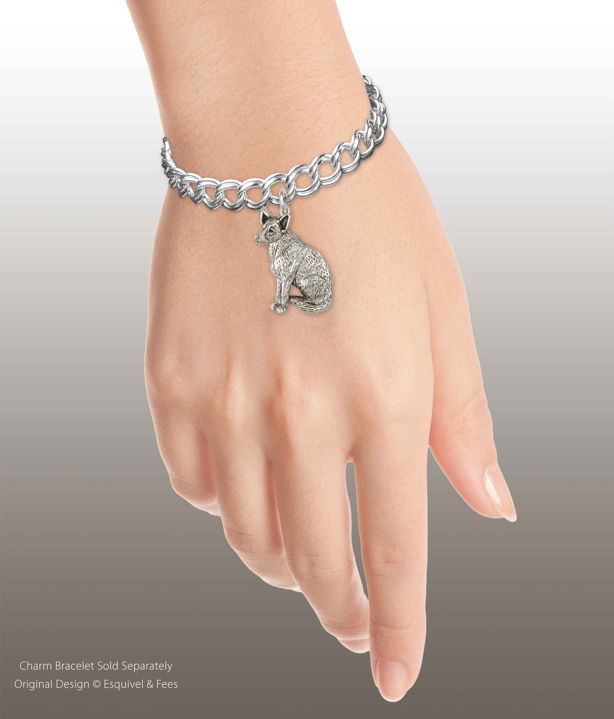 Our handmade Australian Cattle Dog Charm is a perfect addition to your charm bracelet. If you have a slide bracelet, we can also ship this with a special top to fit your slide bracelet. If you require a charm to fit a slide bracelet, please contact us for pricing. This Australian Cattle Dog Charm is Sterling Silver This Australian Cattle Dog design is hand cast in .925 sterling silver. The Australian Cattle Dog design is approximately 1 1/4 inch high.