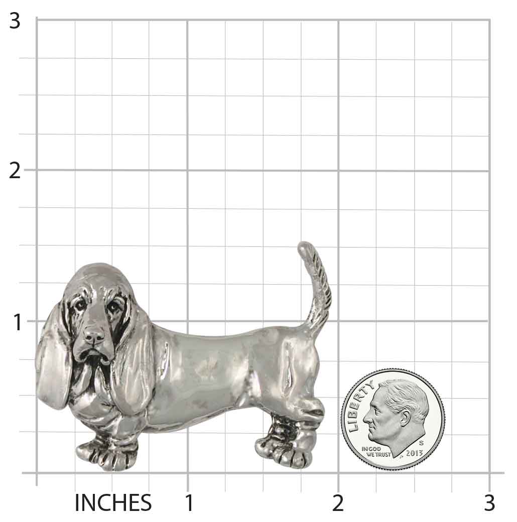 Our Basset Hound Brooch Pin jewelry is exceptionally detailed and is very dimensional. Our Basset Hound Brooch Pin is Sterling Silver.