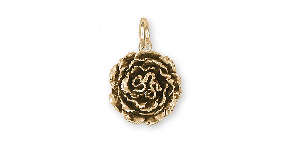 Our Carnation Charm jewelry is exceptionally detailed and is very dimensional. Our Carnation is 14K Gold vermeil.