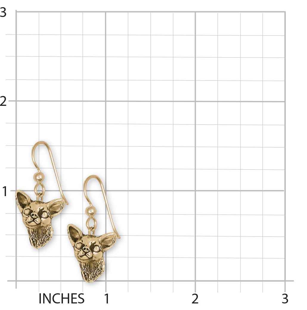 Our Chihuahua Earrings weigh approximately 9.7 grams This design measures approximately 5/8 inch high (15.9 mm) .Your hand made Chihuahua Earrings will arrive in an attractive gift box and carry our 30 day satisfaction guarantee.Our handmade Chihuahua Earrings are perfectly detailed. We offer hypoallergenic surgical steel post backs, French ear wires and leverback ear wires. If you require a special earring type, please contact us. These Chihuahua Earrings are 14K Yellow Gold Optional genuine stone accents and custom engraving are available on most of our designs. Please ontact us for prices.