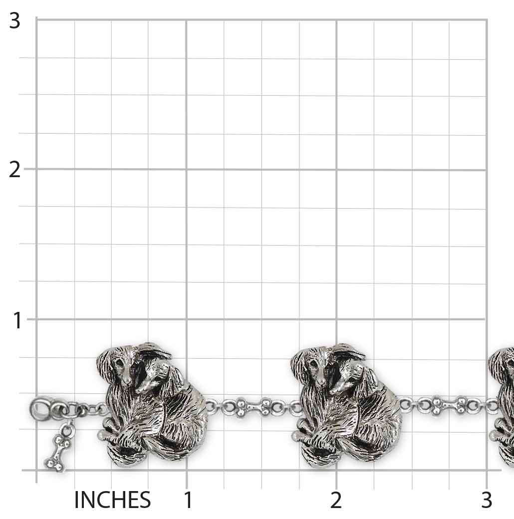 Our Dachshund Bracelet weighs approximately 39.2 grams. This design measures approximately 3/4 inch high (19.1 mm) .