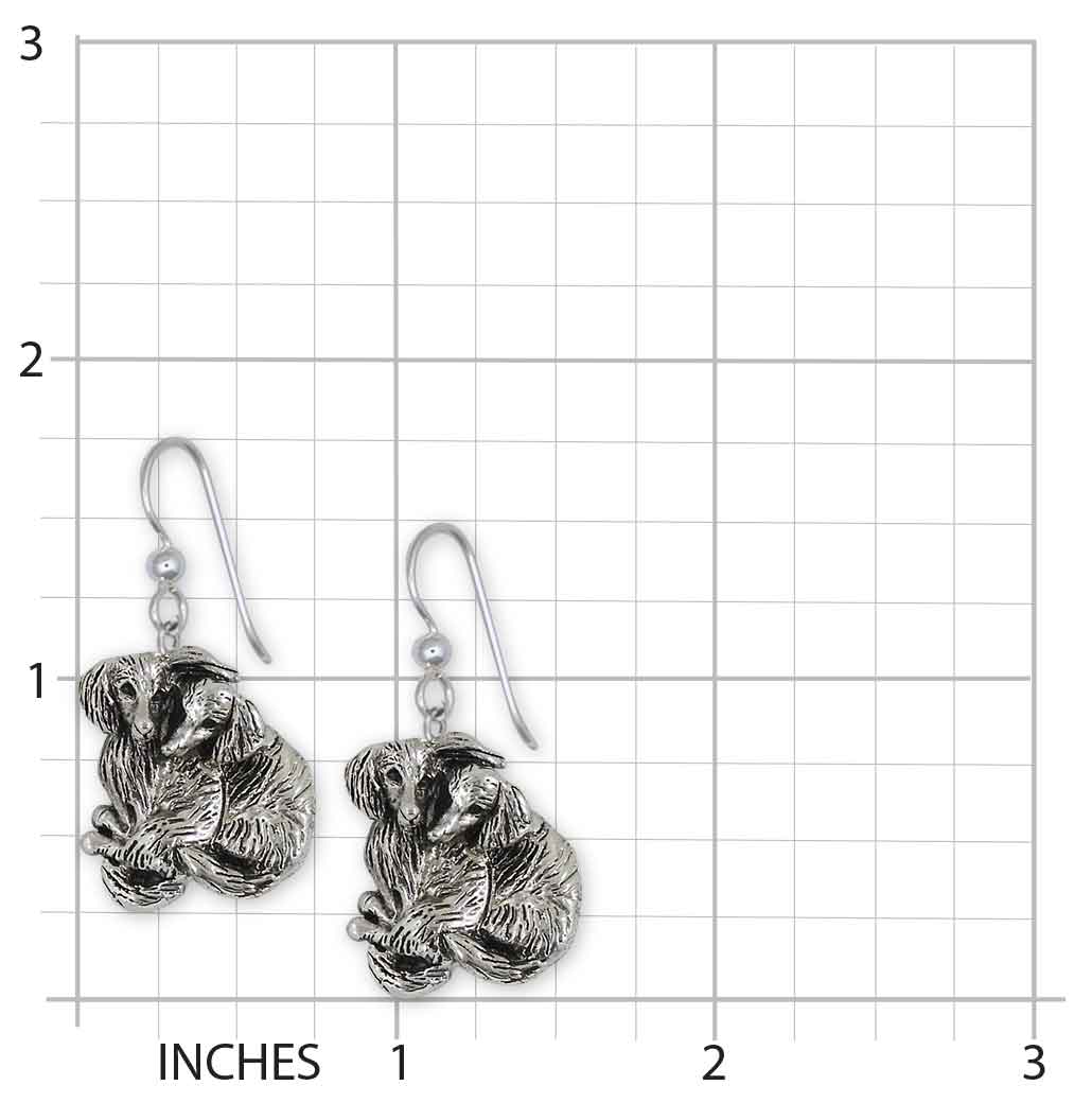 Our Dachshund Earrings weigh approximately 13.5 grams This design measures approximately 3/4 inch high (19.1 mm) .Your hand made Dachshund Earrings will arrive in an attractive gift box and carry our 30 day satisfaction guarantee.Our handmade Dachshund Earrings are perfectly detailed. We offer hypoallergenic surgical steel post backs, French ear wires and leverback ear wires. If you require a special earring type, please contact us. These Dachshund Earrings are Sterling Silver Optional genuine stone accents and custom engraving are available on most of our designs. Please ontact us for prices.