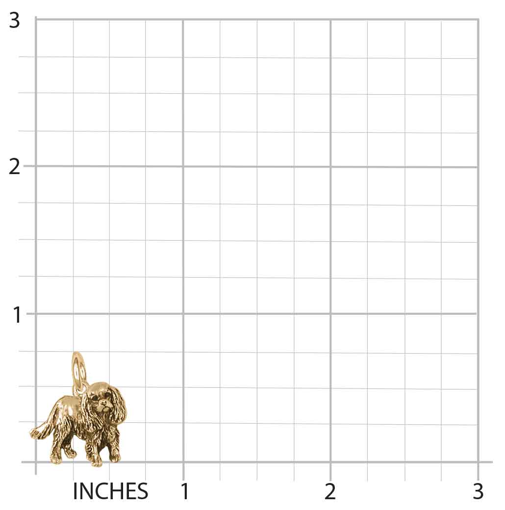 This design measures approximately 11/16 inch wide. This is also available in sterling silver and 14k gold vermeil. Please contact us if you are interested in silver or gold vermeil prices for this Cavalier King Charles Spaniel Charm.The Cavalier King Charles Spaniel design is approximately 11/16 inch wide.