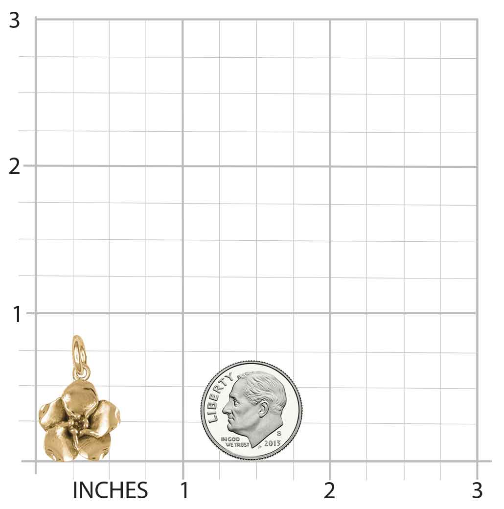 Our Forget Me Not Charm weighs approximately 3 grams in 14k gold. This design measures approximately 9/16 inch high (14.3 mm) .