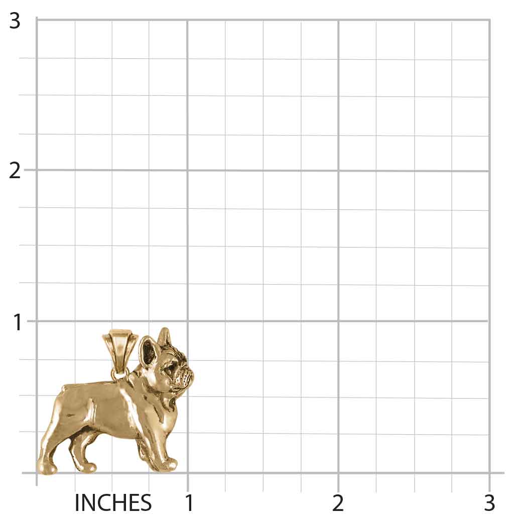 Our handmade Frenchie French Bulldog Pendant jewelry is perfectly detailed and is a wonderful addition to any necklace chain. This Frenchie French Bulldog Pendant is 14K Gold Our Frenchie French Bulldog Pendant weighs approximately 17.1 grams in 14k gold. This design measures approximately 1 1/8 inch wide. This is also available in sterling silver and 14k gold vermeil. Please contact us if you are interested in silver or gold vermeil prices for this Frenchie French Bulldog Pendant.The Frenchie French Bulldog design is approximately 1 1/8 inch wide.