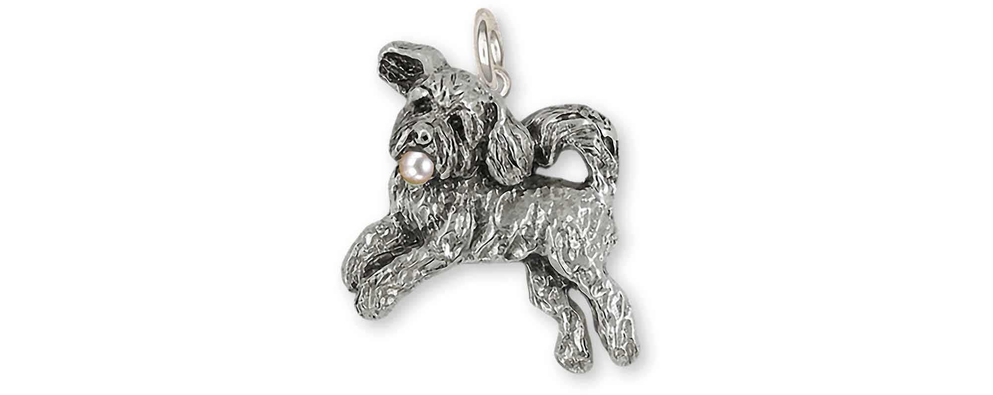 This is an original handmade Esquivel and Fees Goldendoodle Charm jewelry design. Our Goldendoodle Charm jewelry is hand cast, when you place ykour order, using the lost wax casting process and is hand finished. Please allow extra time while we make these for you. Accented with genuine genuine cultured seed pearl - other semi-precious stones and birthstones are available.