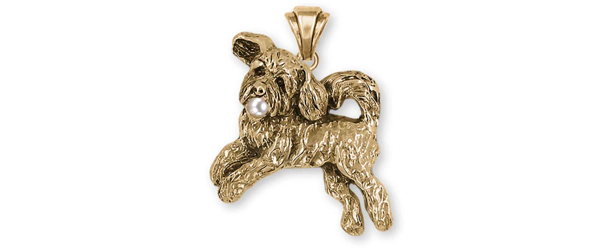 Our handmade Goldendoodle Pendant jewelry is perfectly detailed and is a wonderful addition to any necklace chain. This Goldendoodle Pendant is 14K Gold Vermeil The Goldendoodle is 14K Gold Vermeil.