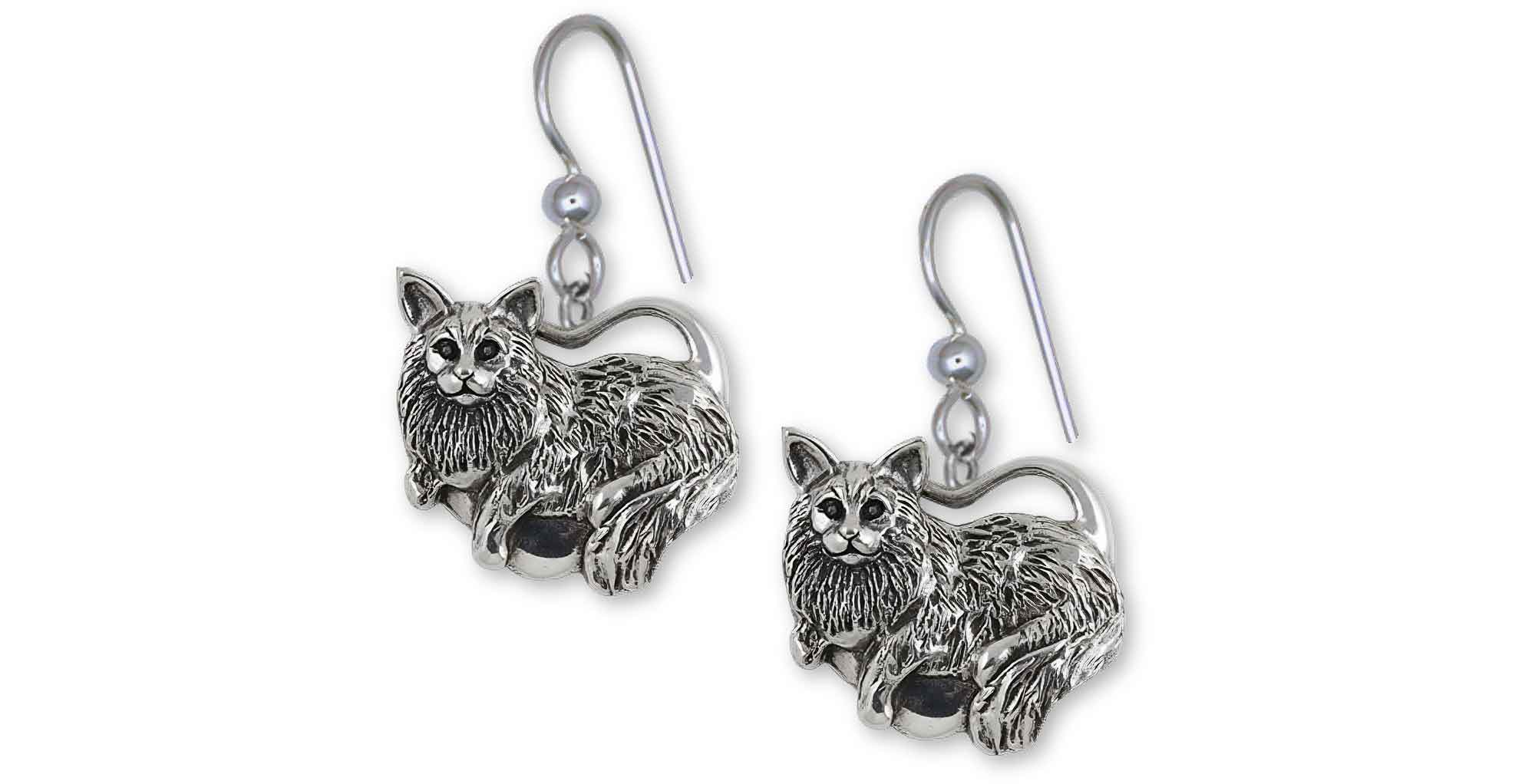 Our Maine Coon Earrings weigh approximately 13 grams This design measures approximately 3/4 inch wide (19.1 mm) .Your hand made Maine Coon Earrings will arrive in an attractive gift box and carry our 30 day satisfaction guarantee.Our handmade Maine Coon Earrings are perfectly detailed. We offer hypoallergenic surgical steel post backs, French ear wires and leverback ear wires. If you require a special earring type, please contact us. These Maine Coon Earrings are Sterling Silver Optional genuine stone accents and custom engraving are available on most of our designs. Please ontact us for prices.