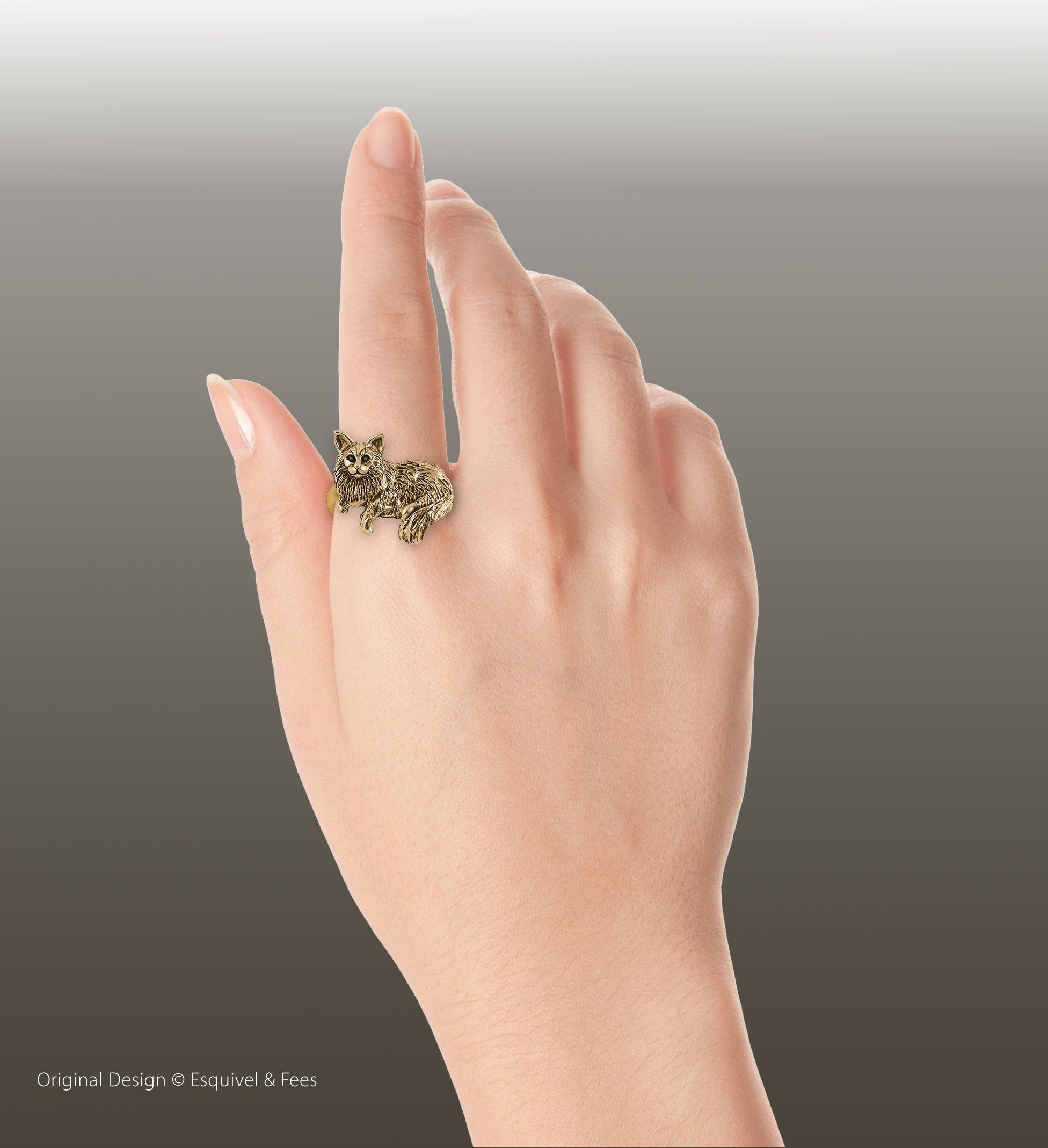 This is an original handmade Esquivel and Fees Maine Coon Ring jewelry design. Our Maine Coon Ring jewelry is hand cast, when you place your order, using the lost wax casting process and is hand finished. Please allow extra time while we make these for you.