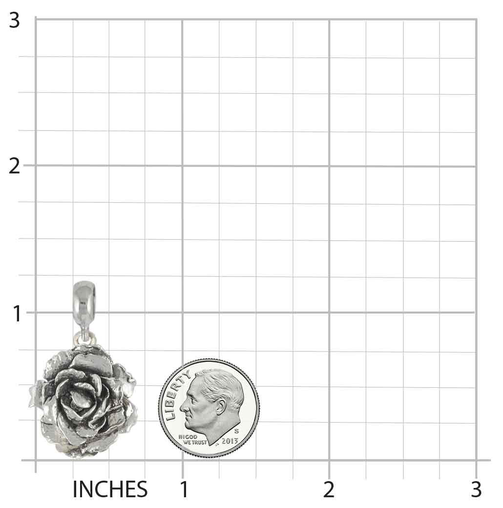 Our Peony Charm Slide jewelry is exceptionally detailed and is very dimensional. Our Peony Charm Slide is Sterling Silver.