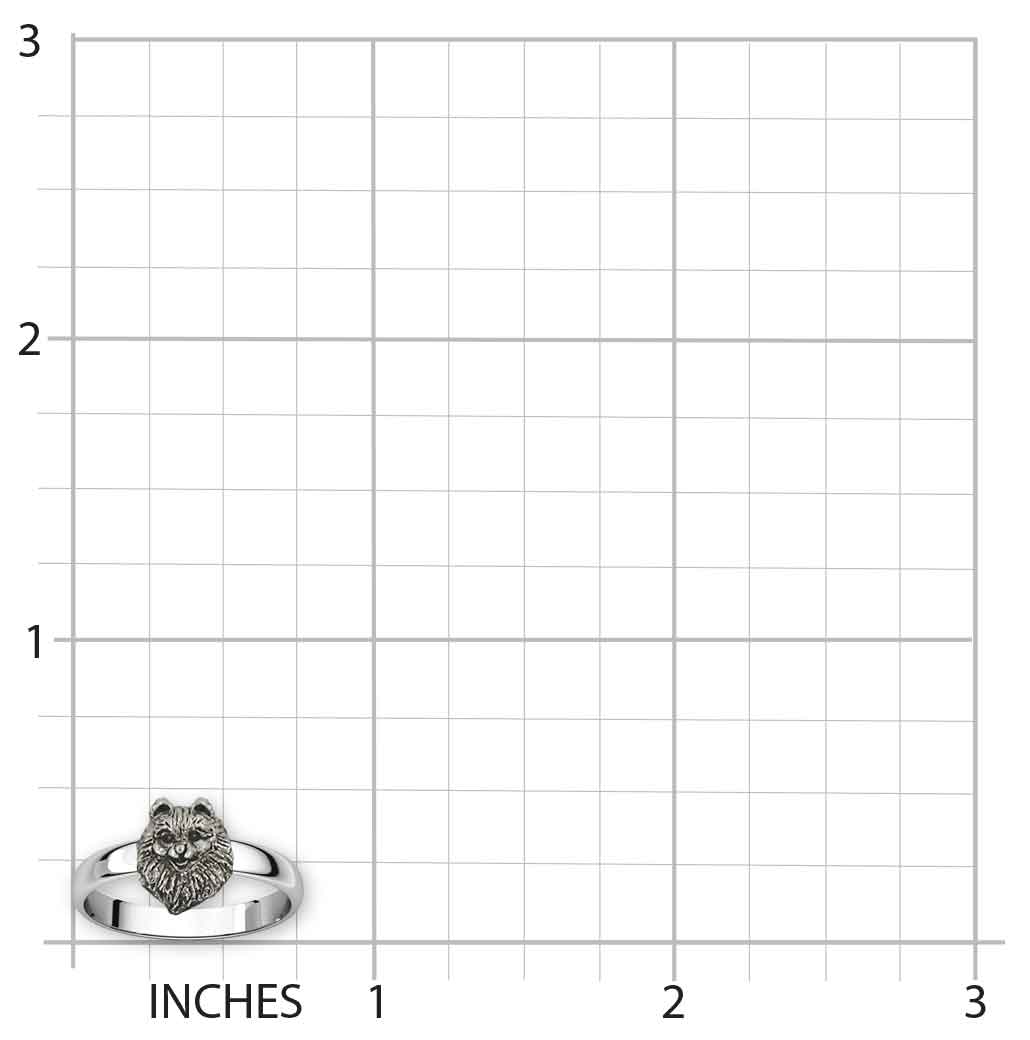 Our Pomeranian Ring weighs approximately 5.7 grams. This design measures approximately 3/8 inch high (9.5 mm) .