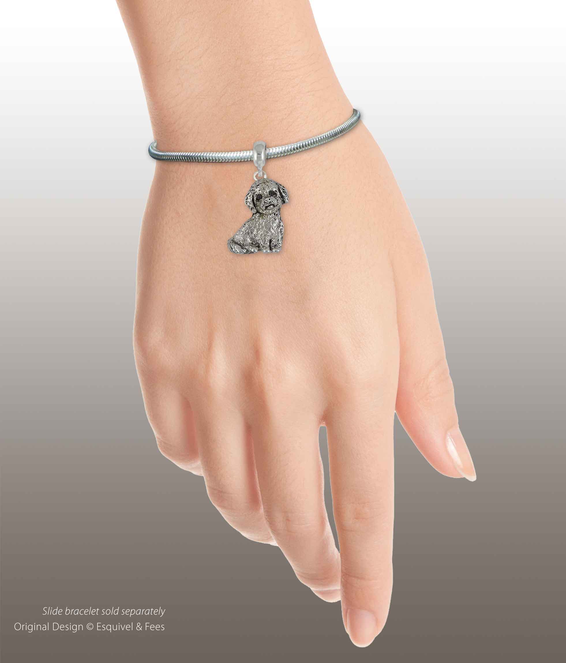 Our handmade Poochon Pandora Charm Slide is hand cast and handmade when you place your order. This Charm Slide is shipped with a special top ring that is designed to slide onto your favorite slide style charm bracelet. This charm will fit a Pandora© style slide bracelet. This Poochon Pandora Charm Slide is Sterling Silver The Poochon Pandora is Sterling Silver.