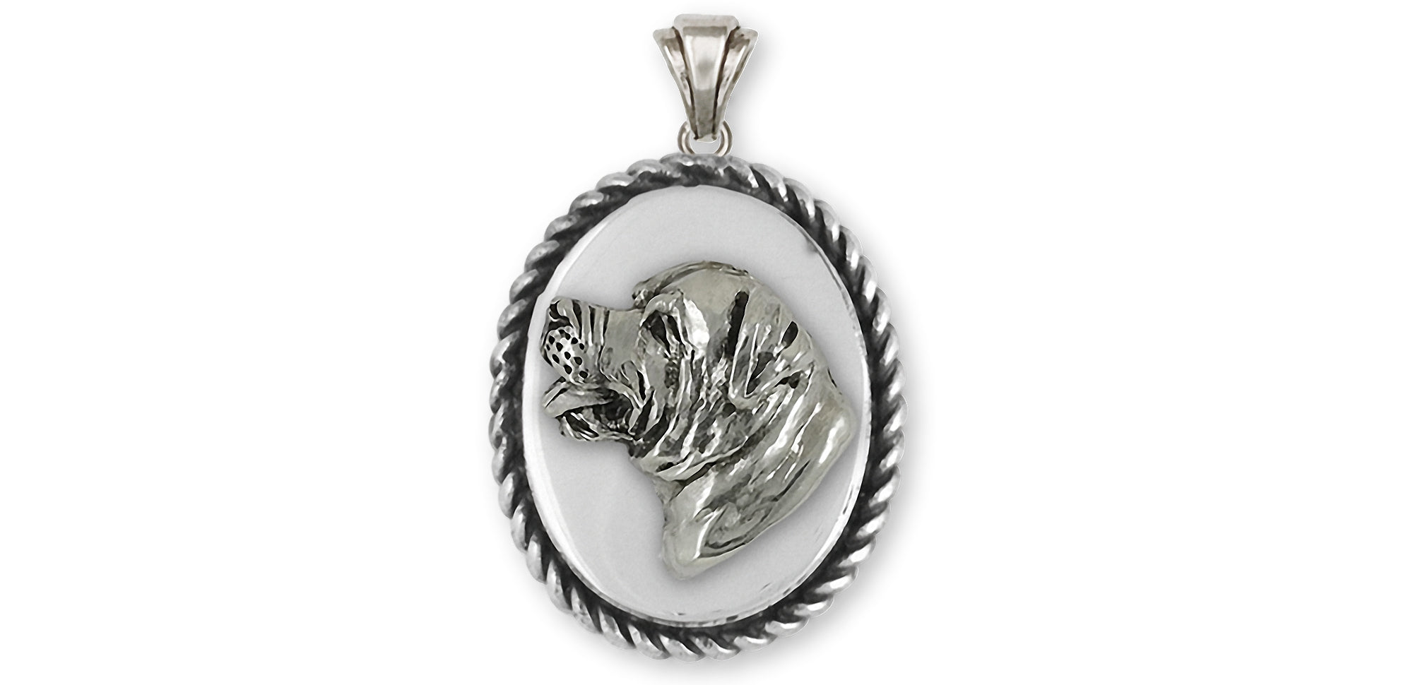 This is an original handmade Esquivel and Fees Rottweiler Pendant jewelry design. Our Rottweiler Pendant jewelry is hand cast, when you place your order, using the lost wax casting process and is hand finished. Please allow extra time while we make these for you. This Rottweiler design is hand cast in .925 sterling silver.