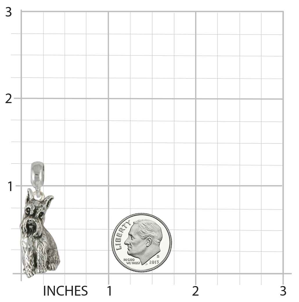 Our Schnauzer Charm Slide weighs approximately 11.28 grams in sterling silver. This design measures approximately 13/16 inch high (20.6 mm) .