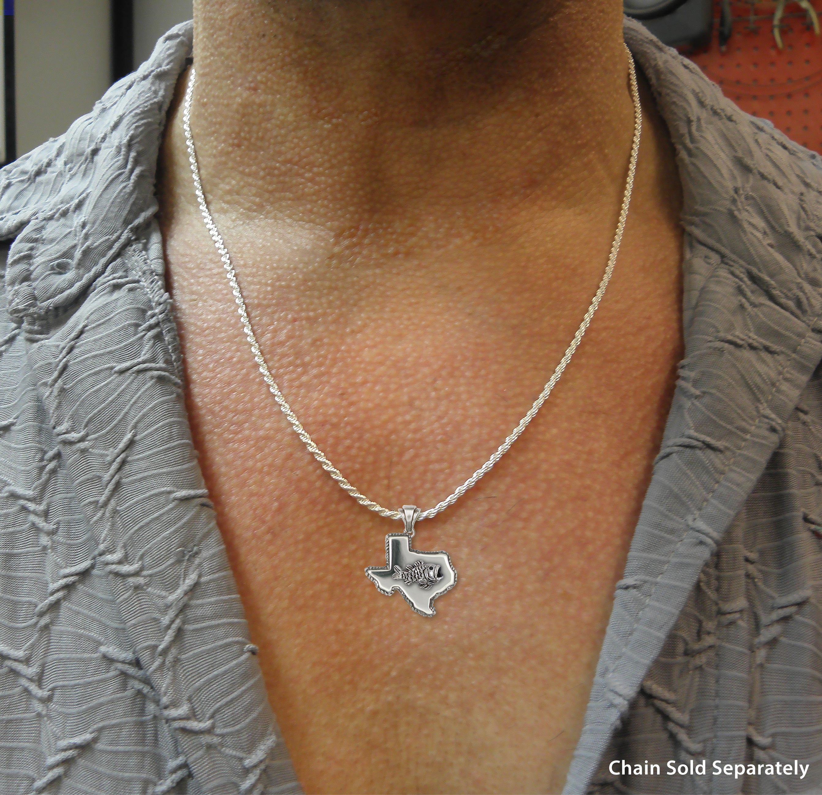 Our handmade Texas Pendant jewelry is perfectly detailed and is a wonderful addition to any necklace chain. This Texas Pendant is Sterling Silver The Texas is Sterling Silver.