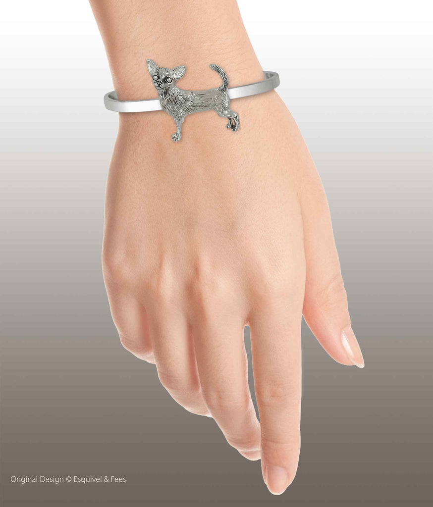 This is an original handmade Esquivel and Fees Chihuahua Bracelet jewelry design. Our Chihuahua Bracelet jewelry is hand cast, when you place your order, using the lost wax casting process and is hand finished. Please allow extra time while we make these for you. This Chihuahua design is hand cast in .925 sterling silver.