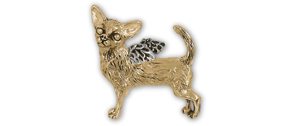 Our handmade Chihuahua Brooch Pin is a perfect way to dress up a blazer or a jacket. Our handmade Chihuahua Brooch Pin is handmade for you and is remarkably detailed. This Chihuahua Brooch Pin is 14K Gold Vermeil The Chihuahua is 14K Gold Vermeil.