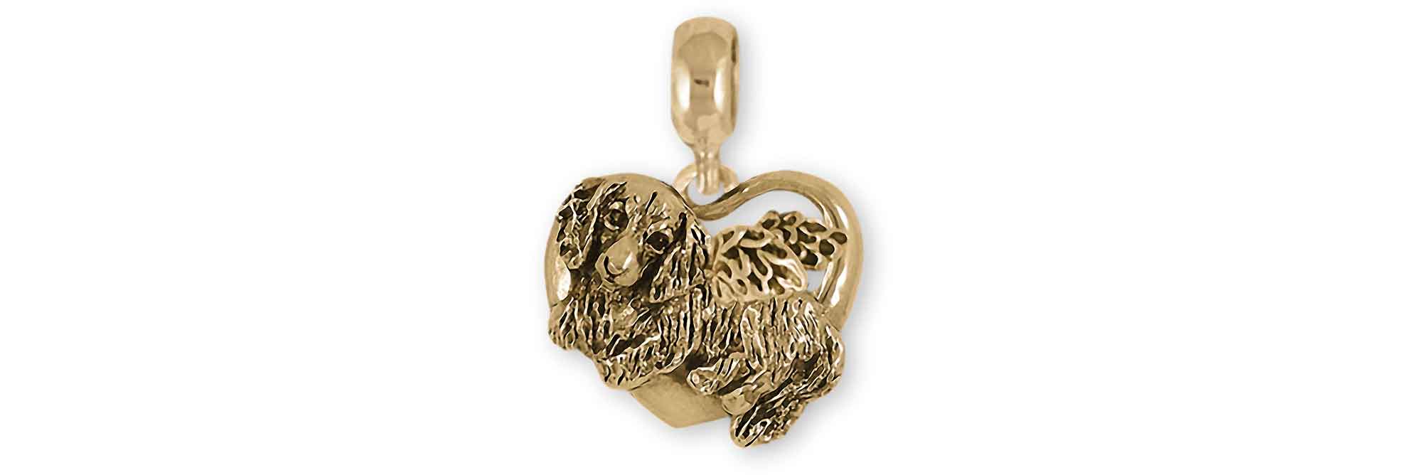 Dachshund Pandora Charm Slide 14k Yellow Gold Handmade Long Hair Dachshund Jewelry This Charm Will Fit A Pandora® Slide Bracelet LHD1A-PNSG