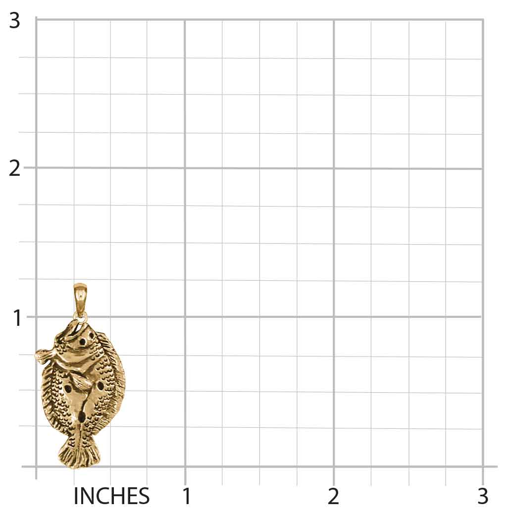 Our handmade Flounder Pendant jewelry is perfectly detailed and is a wonderful addition to any necklace chain. This Flounder Pendant is 14K Gold Our Flounder Pendant jewelry is exceptionally detailed and is very dimensional. Our Flounder is 14K Gold.