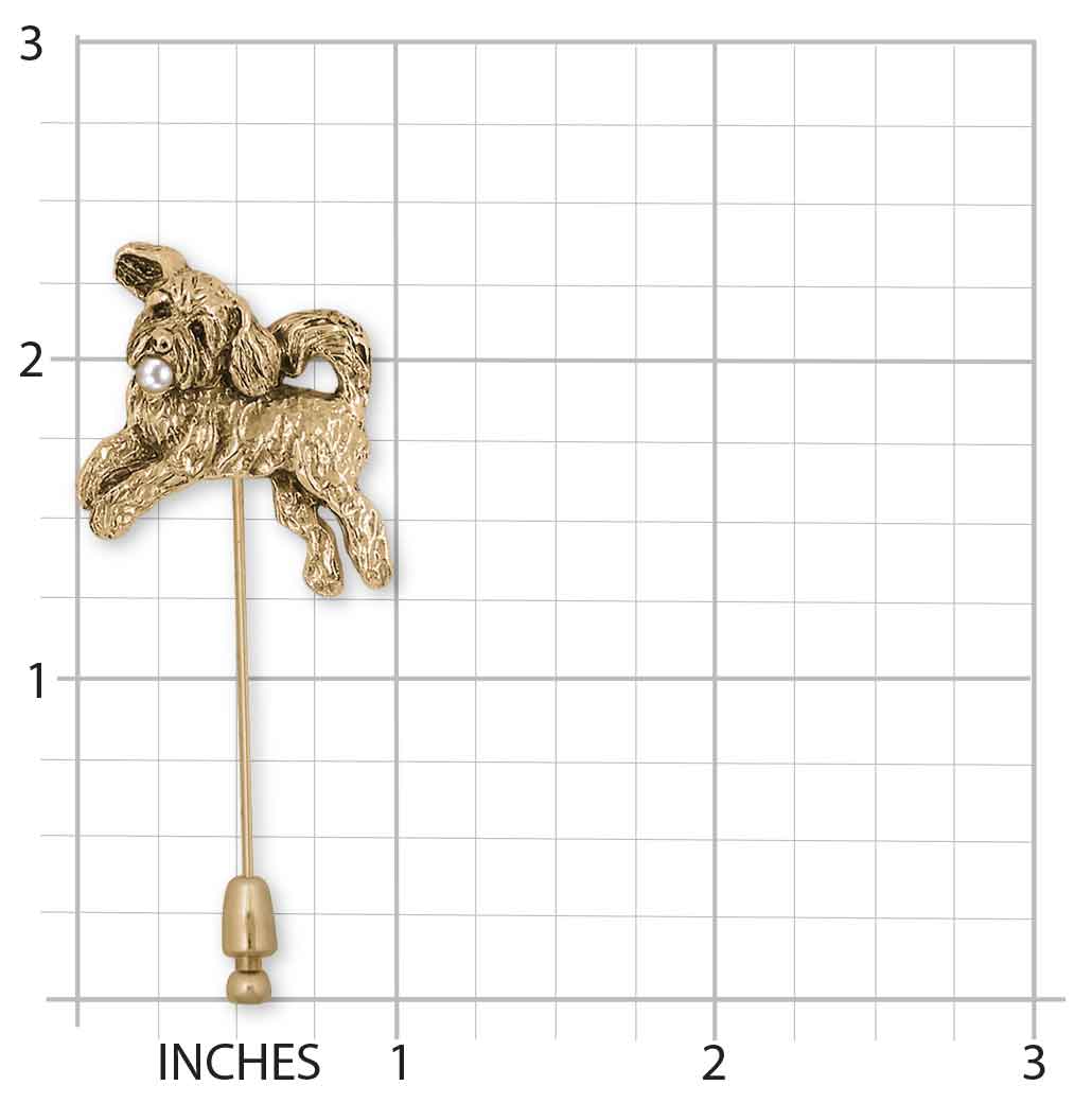 Our Goldendoodle Brooch Pin weighs approximately 8.4 grams. This design measures approximately 2 1/4 inch high (57.2 mm) .