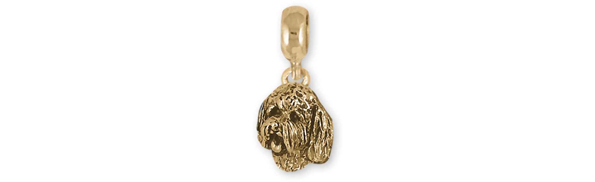 Our handmade Goldendoodle Pandora Charm Slide is hand cast and handmade when you place your order. This Charm Slide is shipped with a special top ring that is designed to slide onto your favorite slide style charm bracelet. This charm will fit a Pandora© style slide bracelet. This Goldendoodle Pandora Charm Slide is 14K Gold Vermeil The Goldendoodle Pandora is 14K Gold Vermeil.