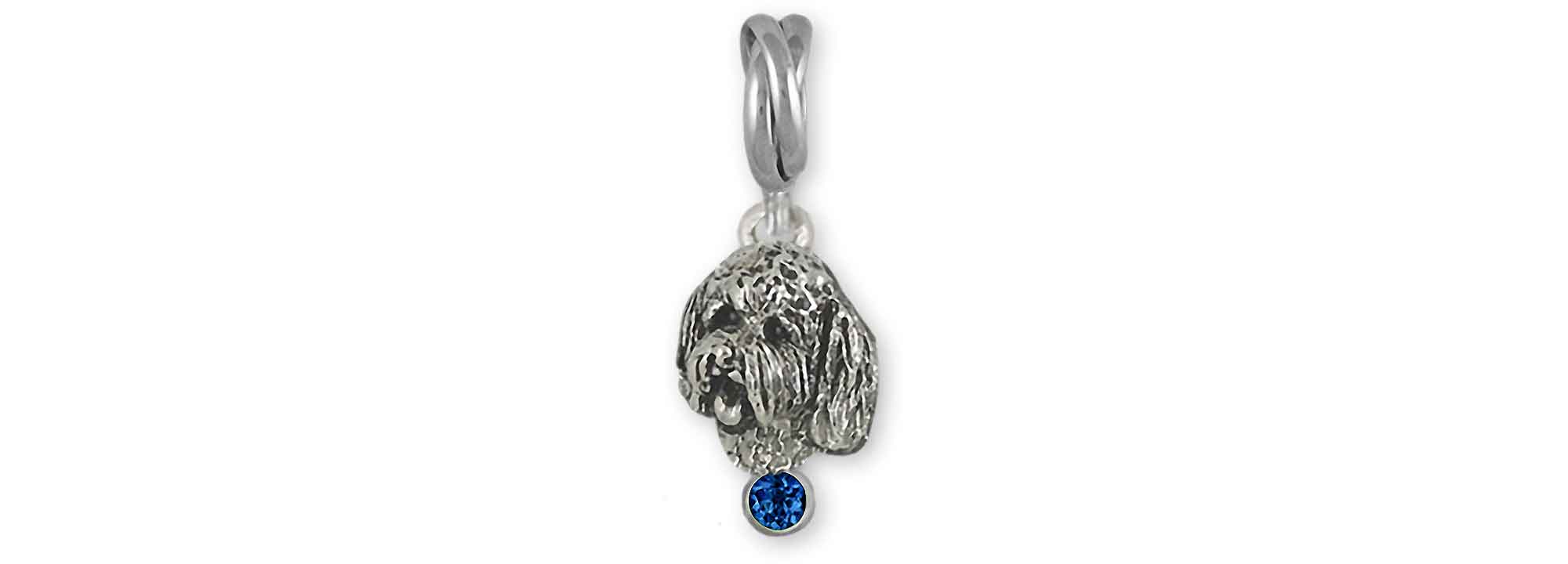 Our handmade Goldendoodle Pandora Charm Slide is hand cast and handmade when you place your order. This Charm Slide is shipped with your choice of Swarovski Austrian crystal accents available in any stone color of your choice. Genuine stones are also available, please contact us for genuine stone prices. This charm will fit a Pandora® style slide bracelet. This Goldendoodle Pandora Charm Slide is Sterling Silver The Goldendoodle Pandora is Sterling Silver.