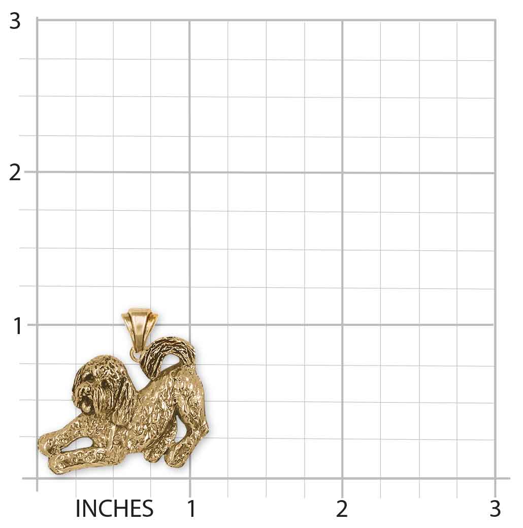 Our Goldendoodle Pendant weighs approximately 11.8 grams. This design measures approximately 1 1/8 inch wide (28.6 mm) .