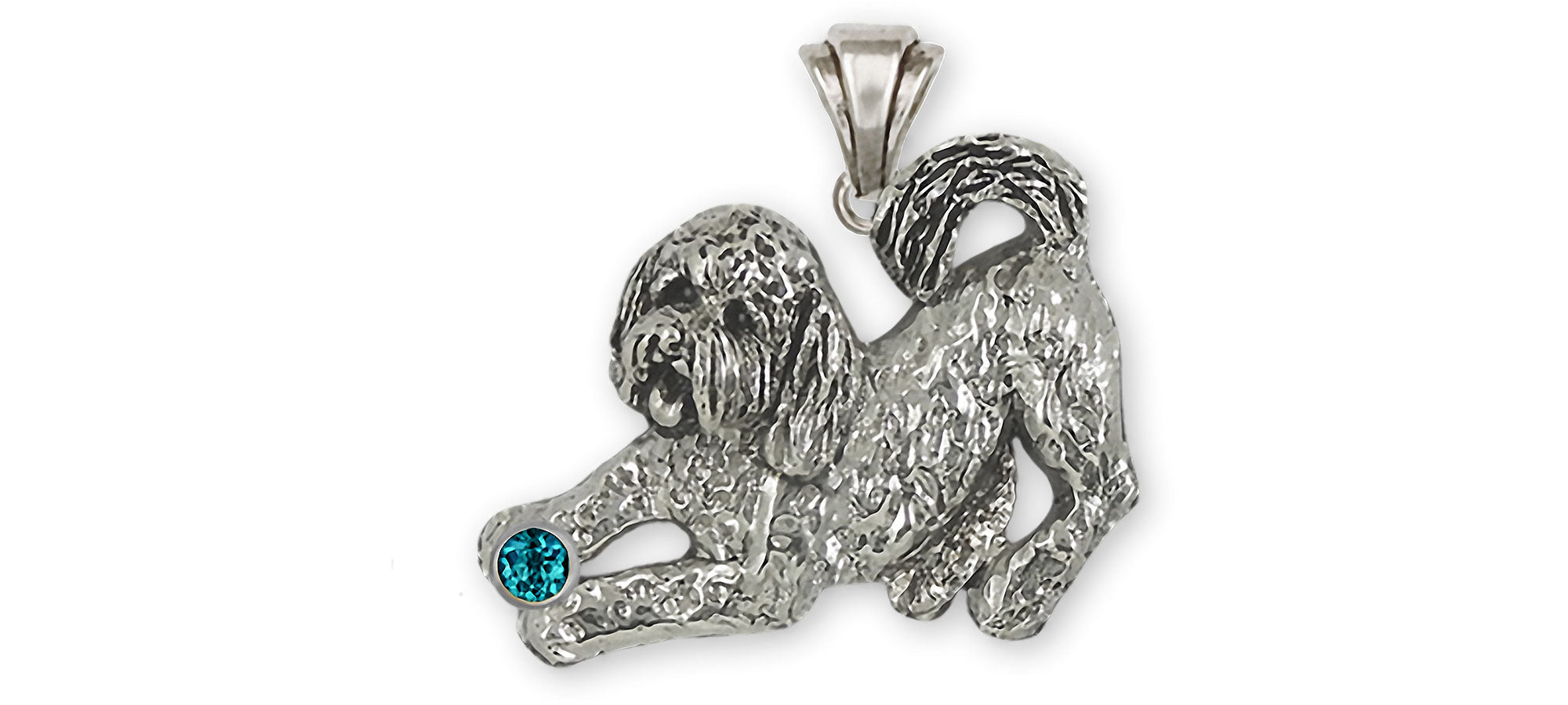 Our handmade Goldendoodle Pendant jewelry is a perfect addition to any necklace chain. Our Goldendoodle Pendant is shipped with your choice of color of Swarovski Austrian Crystal, available in any color, for a special personal touch. Genuine birthstones are also available, please contact us for genuine stone prices. This Goldendoodle Pendant is Sterling Silver The Goldendoodle is Sterling Silver.