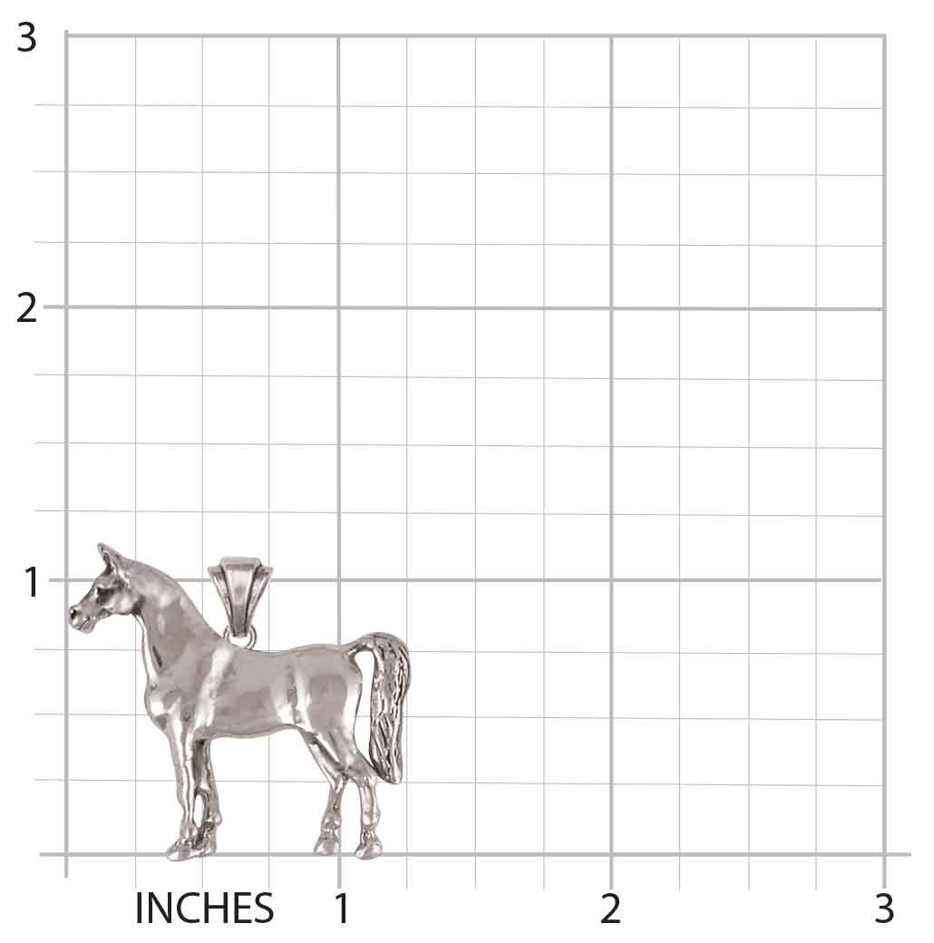Our Horse Pendant weighs approximately 10 grams in 14k gold. This design measures approximately 1 1/4 inch wide.