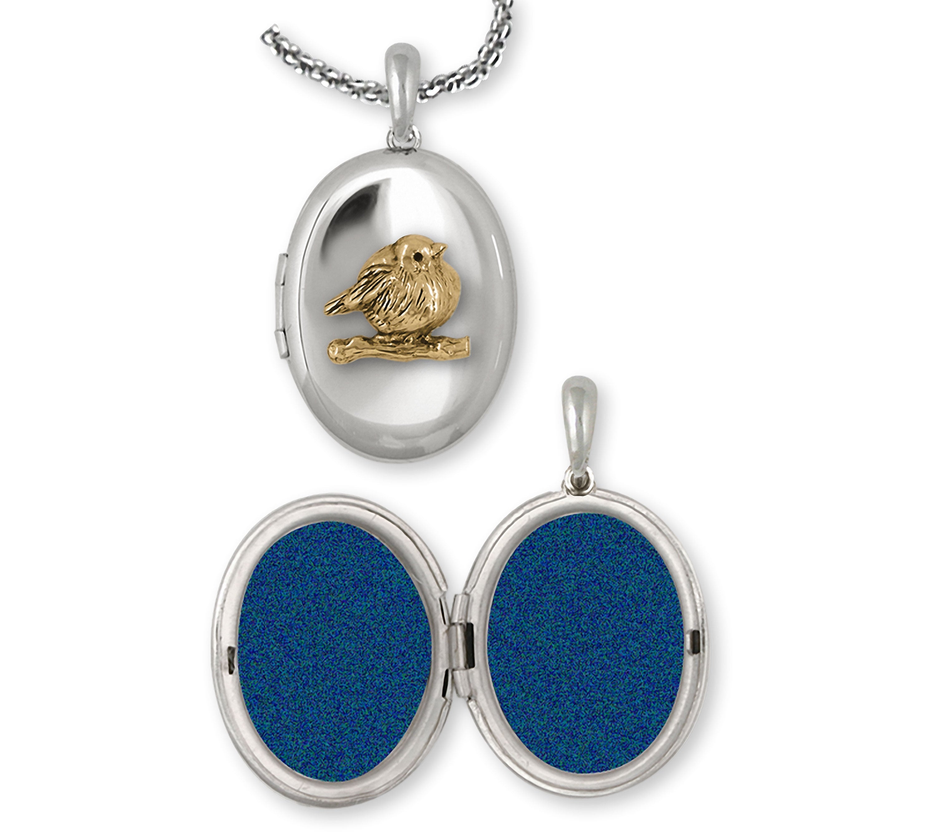 Our handmade Love Bird Photo Locket is shipped with a quality sterling silver chain. Our Love Bird Photo Locket is a high quality locket that will hold 2 of your favorite photographs. Optional personalized engraving is also available on the back of our Love Bird Photo Locket for a special personal touch. We also offer our exclusive photo service... you email us 2 photos for the photo locket and we will retouch them and perfectly size them to fit your photo locket. We will also trim the photos and insert them into your locket before shipping to you, Please contact us for prices. This Love Bird Photo Locket is Silver And 14K Gold The Love Bird is Silver And 14K Gold.
