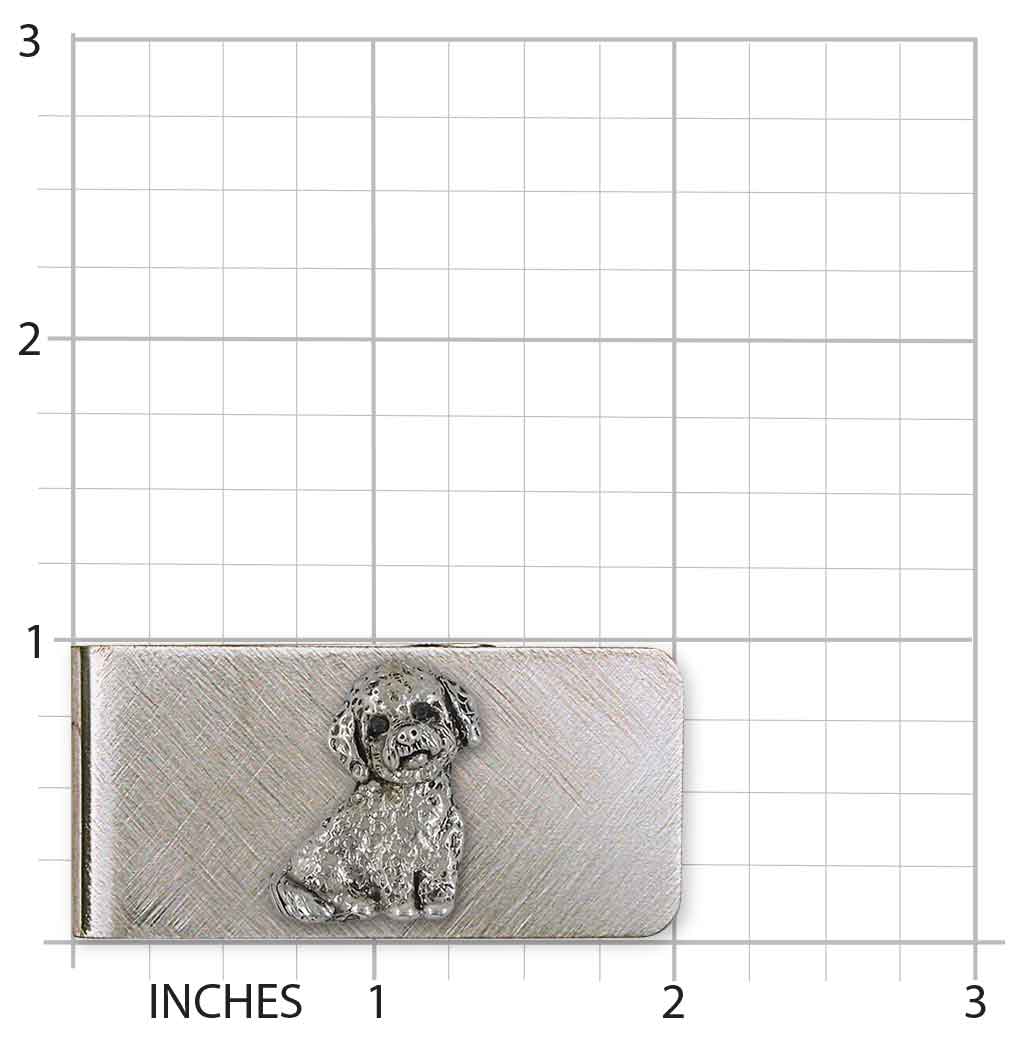 Our Poochon Money Clip weighs approximately 8.7 grams. This design measures approximately 2 inch wide (50.8 mm) .