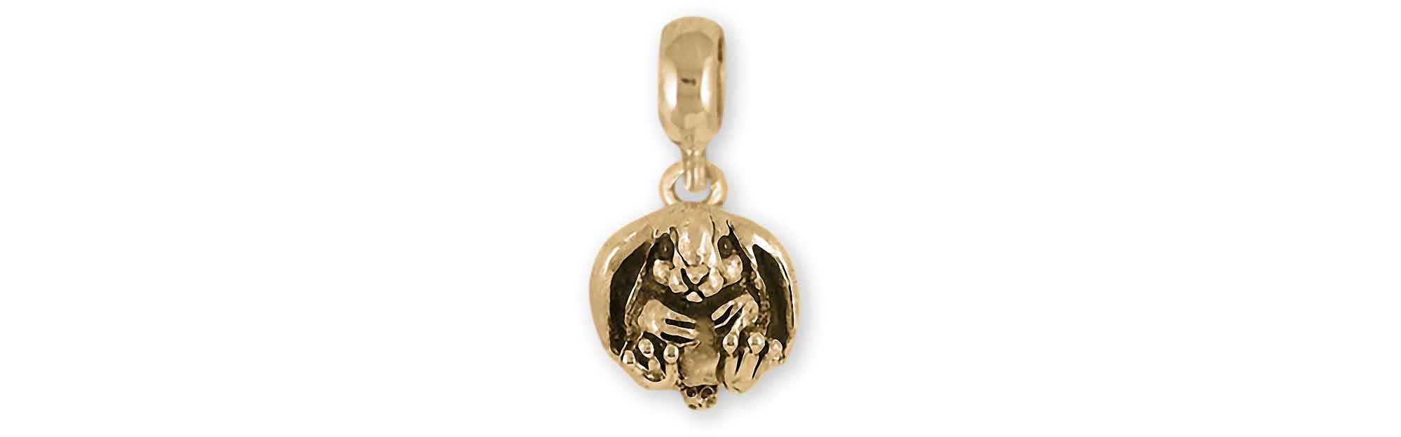 Our handmade Rabbit Pandora Slide Bracelet And Charm is hand cast and handmade when you place your order. This Slide Bracelet And Charm is shipped with a special top ring that is designed to slide onto your favorite slide style charm bracelet. This charm will fit a Pandora© style slide bracelet. This Rabbit Pandora Slide Bracelet And Charm is 14K Gold Vermeil The Rabbit Pandora is 14K Gold Vermeil.