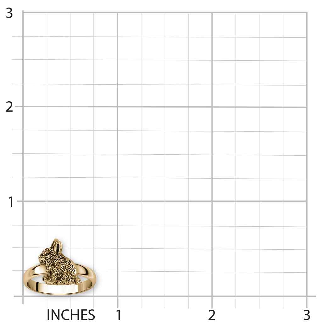 Our Rabbit Ring weighs approximately 8.9 grams. This design measures approximately 1/2 inch high (12.7 mm) .