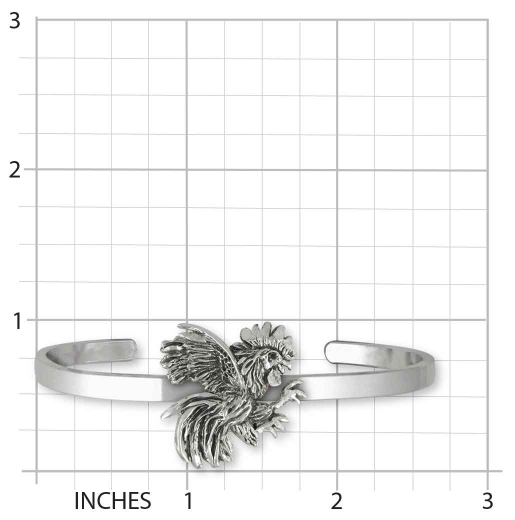 Our Rooster Bracelet weighs approximately 21.2 grams. This design measures approximately 1 inch high (25.4 mm) .